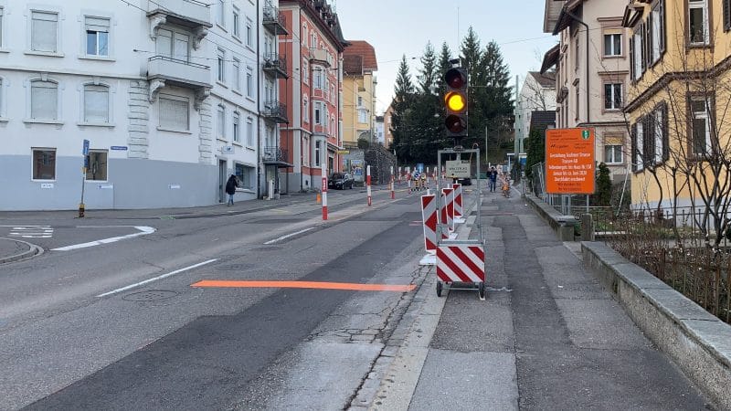 Im Abschnitt von der Hochwachtstrasse bis zur Fellenbergstrasse werden die beiden Bushaltestellen und die Strasse erneuert. Die Bauarbeiten dauern gemäss einer Mitteilung der Stadt voraussichtlich bis Ende Juni. Der Verkehr wird in dieser Zeit einspurig geführt und mit einem Lichtsignal gesteuert. Entsprechend müssen Autofahrerinnen und Autofahrer in den Morgen- und Abendstunden mit längeren Wartezeiten rechnen.